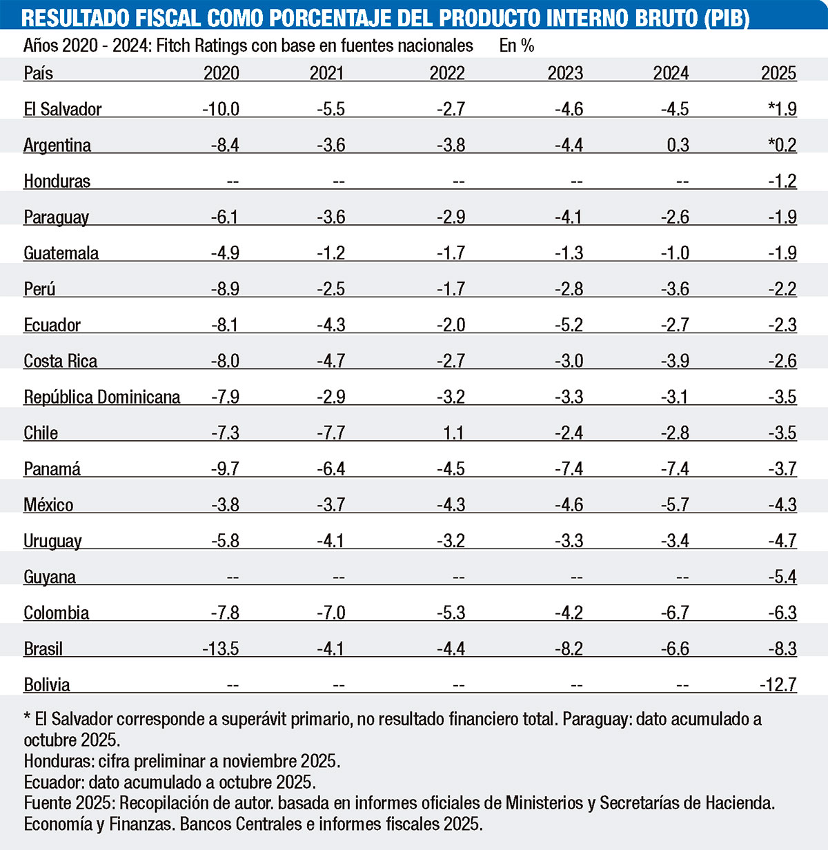 Bajo este panorama, América Latina y el Caribe mostraron ambas caras de la moneda 2025. Desde economías con desequilibrios de dos dígitos como proporción del PIB, hasta países que lograron cerrar el año con balances positivos por segundo período consecutivo.