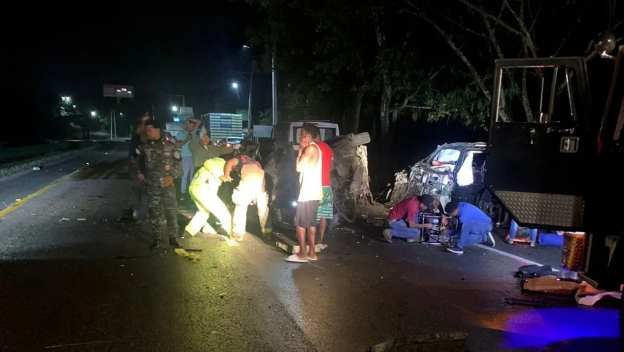 LA ALTAGRACIA.- Al menos cinco personas murieron y 12 resultaron heridas tras un triple choque entre un camión recolector de basura, una camioneta y una motocicleta en una carretera cercana a la comunidad en la provincia La Altagracia, informaron fuentes de socorro.