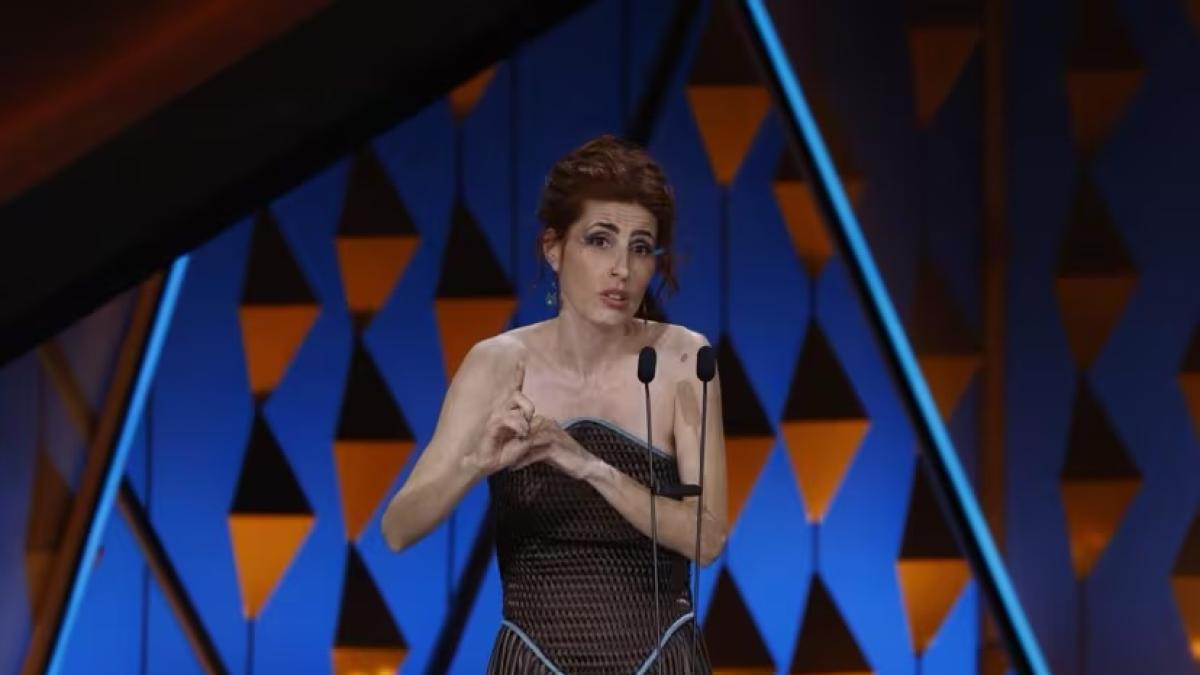 La intérprete, primera actriz sorda en ser nominada al Goya, quiso ocuparse el premio a la comunidad sorda ya la posibilidad de que el cine sea para todo el mundo: “Sin límites ni fronteras ningún ser humano es invisible. Ninguna persona sorda es muda. Tenemos una identidad y una voz propia, pero no siempre es hablado. ¡Viva el cine accesible!”.